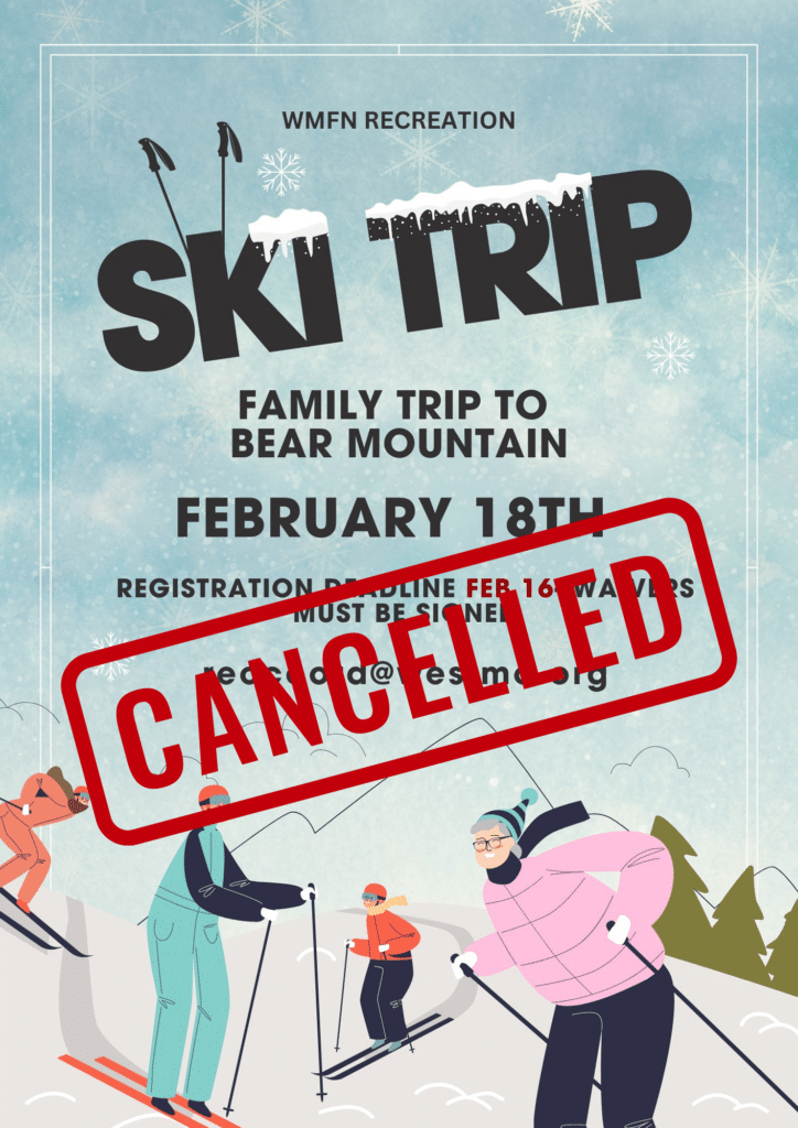 The Bear Mountain ski trip has been cancelled due to lack of registrations.