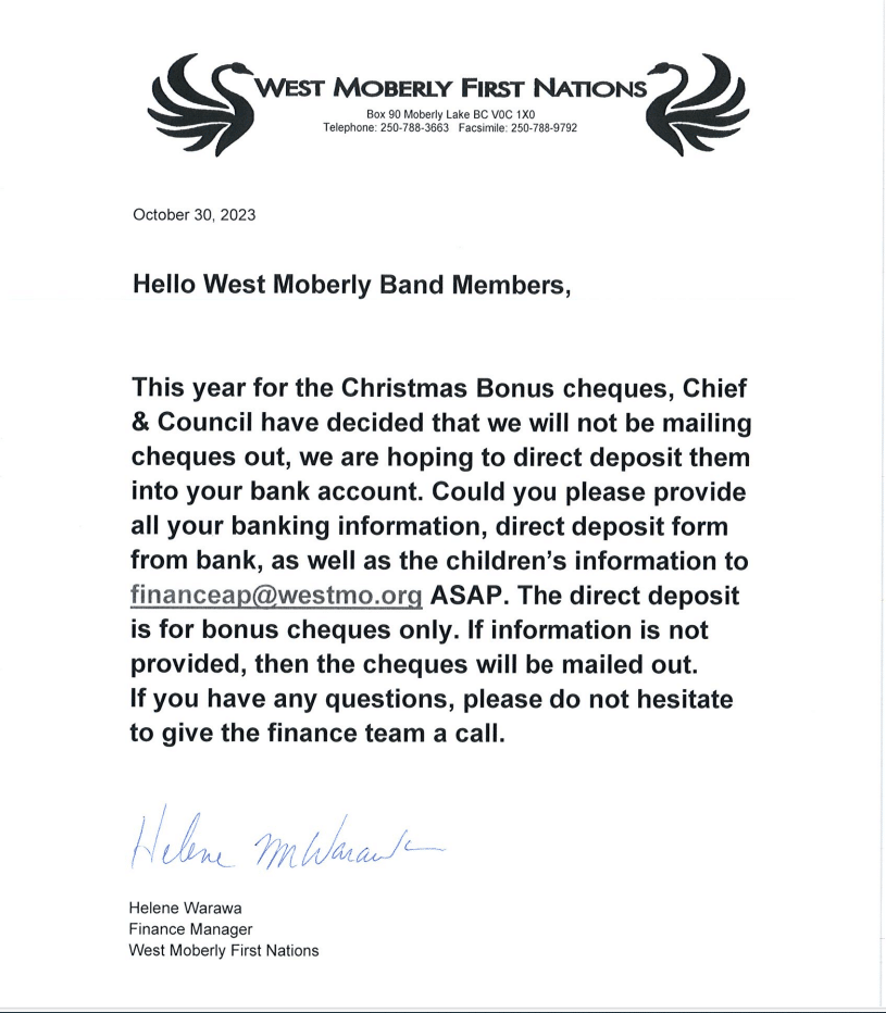 Direct Deposit Memo