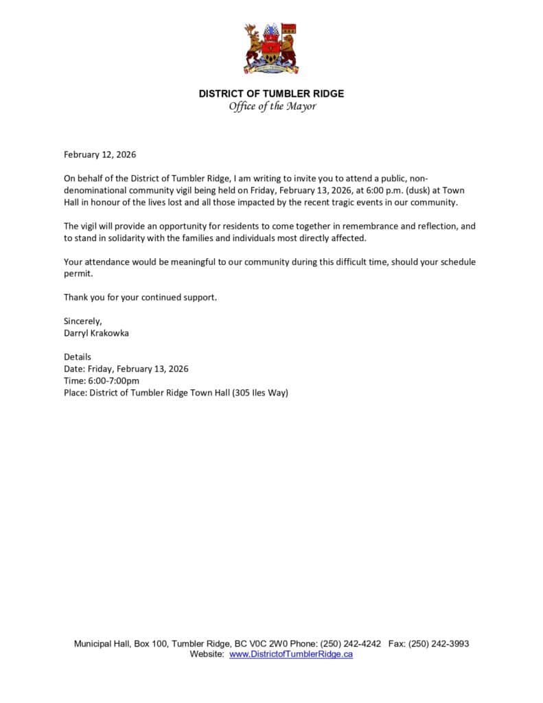 Invitation from the community of Tumbler Ridge