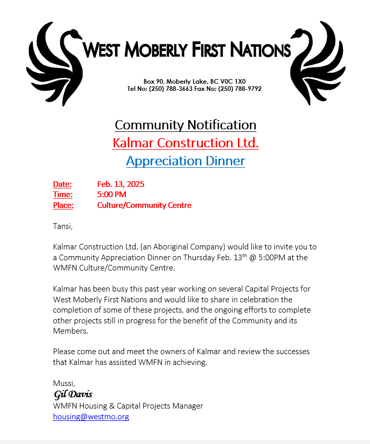 Kalmar Construction Ltd. Community Appreciation Dinner