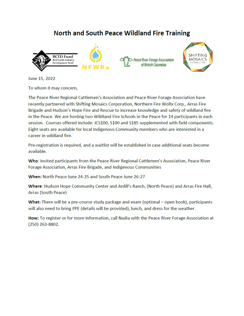Peace Wildland Fire Training Invitation Letter – June 15, 2022