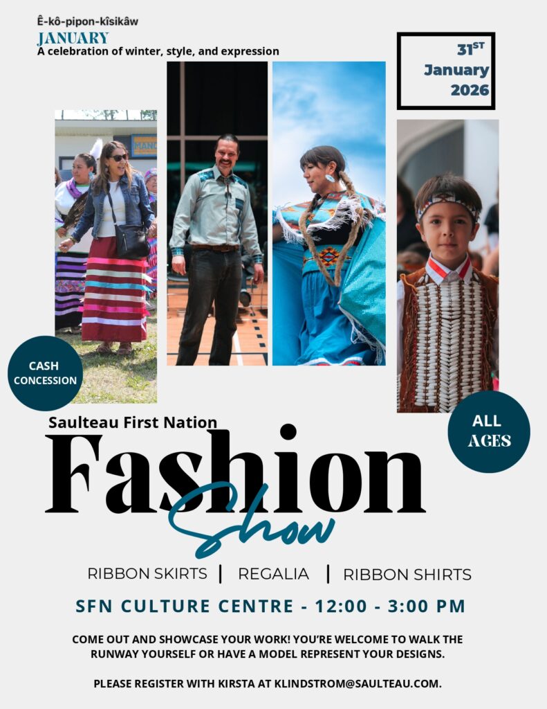 Showcase Your Fashion: Bring your made-by-you ribbon skirts, ribbon shirts, or regalia. Model your own creations or someone else’s. There’s no limit to how many items you can show off!