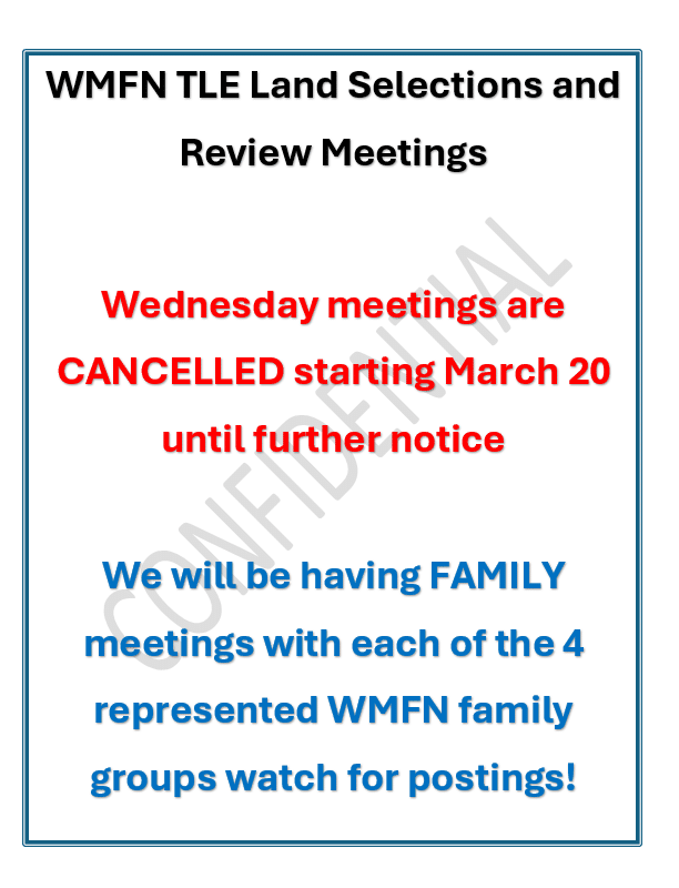 WMFN TLE Land Selections and Review Meetings-Cancelled